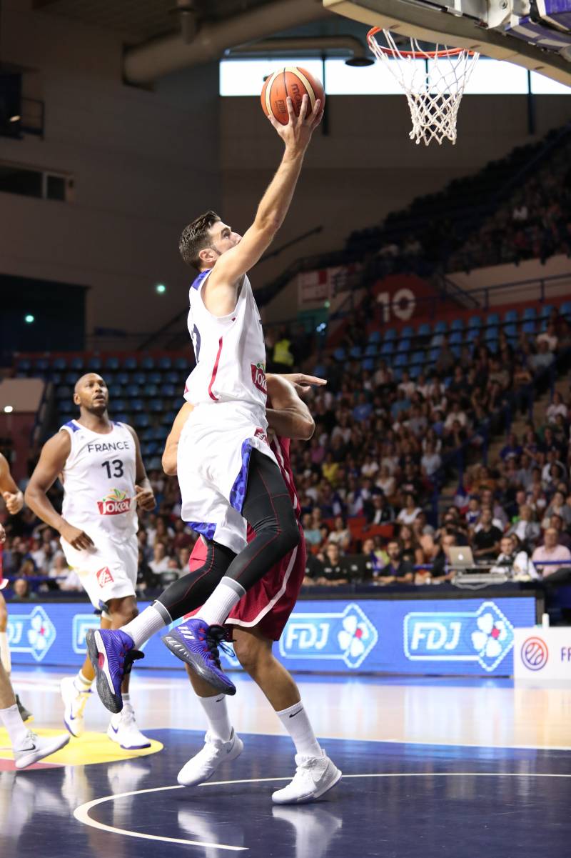 Vincent Collet rentrait rapidement dans ses rotations, trouvant dans le binôme Antoine Diot-Kevin Séraphin un duo inspiré. Le nouveau pivot de Barcelone est une des attractions de l’été et après cinq ans d’absence, il n’a pas raté son grand retour en sélection, martyrisant avec brutalité les cercles palois, imité, lors de son retour sur le banc, par Joffrey Lauvergne. 14 points, 10 rebonds à 7/10 en 20 minutes, les pivots tricolores ont confirmé leur potentiel offensif, d’autant plus lorsqu’ils sont idéalement servis près du panier. Une plus grande intensité défensive sur les porteurs de balle et un bon passage de Louis Labeyrie puis d’Evan Fournier permettaient à la France d’effacer son retard au moment de rejoindre les vestiaires (33-29).