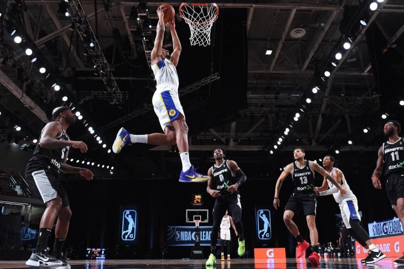 La G-League est devenue une vraie ligue depuis au moins 4 ou 5 ans. Les joueurs qui gardent la balle sous le bras et qui vont marquer leur panier, ça n’existe plus trop. Les mecs qui font ça, les équipes ne veulent même plus les prendre aujourd’hui. Le jeu ressemble beaucoup au jeu NBA, le rôle que tu as ressemble aussi au rôle que tu peux avoir en NBA. À titre personnel, mon rôle est différent de celui que je pouvais avoir à Toronto où j’étais la première ou deuxième option en attaque quand Fred VanVleet ou Pascal Siakam descendaient (Axel a joué entre 2015 et 2017 aux Raptors 905, équipe affiliée aux Toronto Raptors, ndlr). Là je suis dans un rôle de 3-and-D, un peu comme en Équipe de France même si je joue aussi poste 4. Nico Mannion et Jordan Poole sont sous contrat avec les Warriors et ont beaucoup la balle. Mais je sais comment ça se passe, j’ai 28 ans donc je connais. Ça fait bizarre de le dire mais je suis un vétéran dans cette équipe. Je dois faire en sorte que l’équipe joue bien et m’occuper des jeunes.