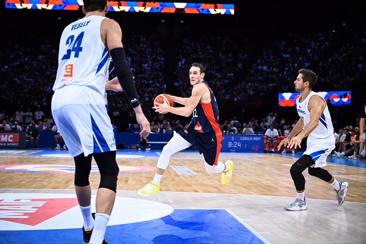 L’Equipe de France est cependant passée maître dans la gestion de cette réalité et ne visera rien d’autre que la victoire dans une ville où elle avait déjà évolué en novembre 2018 et où un 18-0 salvateur pour conclure le match lui avait évité une cruelle désillusion. Face à elle, la République tchèque, dernière de la poule, n’a plus rien à espérer. Equipe surprise de 2021, victorieuse du TQO au Canada et quart de finaliste à Tokyo dans la foulée, elle avait calé en huitièmes de finale de l’EuroBasket après un combat épique face à la Grèce mais reste sur quatre défaites consécutives sur les fenêtres FIBA. Privés de leurs stars Tomas Satoransky et Jan Vesely (FC Barcelone) et d'un de leurs meilleurs seconds couteaux, Jaromir Bohacik (Bamberg), les Tchèques s’appuient cependant sur un noyau dur intact puisque cinq joueurs de l’effectif ont participé à l’EuroBasket, dont la solide paire intérieure Patrik Auda (2,06 m)-Ondrej Balvin (2,17 m) et le scoreur Vojtech Hruban (London Lions).