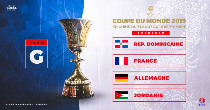 La FIBA a procédé ce samedi à Shenzen (Chine), en présence de Jean-Pierre Siutat (Président de la FFBB) et Boris Diaw (General Manager adjoint du Team France Basket), au tirage au sort de la Coupe du Monde 2019 (31 août au 15 septembre). L’Équipe de France a été placée dans le groupe G dont les matches se joueront à Shenzen, en compagnie de la République Dominicaine, l’Allemagne et la Jordanie.