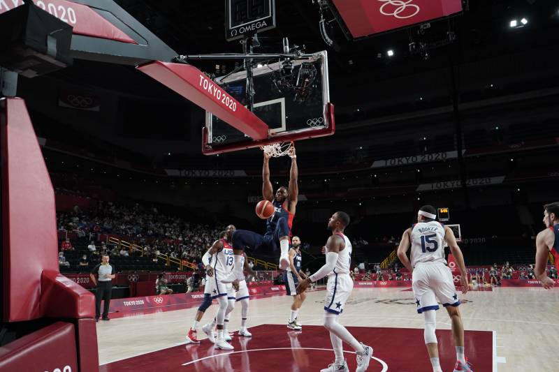 Les Etats-Unis ne pardonnent aucune erreur, aucun relâchement. Les Australiens en demi-finale avaient à peine eu le temps de lever les yeux vers le panneau d’affichage indiquant +15 qu’ils comptaient déjà 10 points de retard. La France a connu le même sort, ou presque. Jayson Tatum prenait le relai de Durant et de l’autre côté du terrain la défense US, et notamment la sangsue Jrue Holiday, tenait parfaitement les duels à l’extérieur. Le meneur des Bucks n’est pas la plus exposée des stars NBA mais depuis le début des Jeux il donne souvent le ton pour les troupes de Gregg Popovich. Il entraîne avec lui une équipe au talent exceptionnel mais qui devient véritablement injouable lorsqu’elle décide de changer de braquet défensivement.